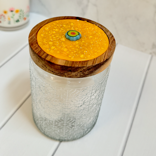 Embossed Glass Jar with Fused Glass Lid - 4202