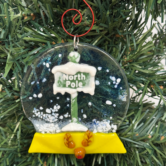 Signs Snow Globe Fused Glass Ornament - 9664